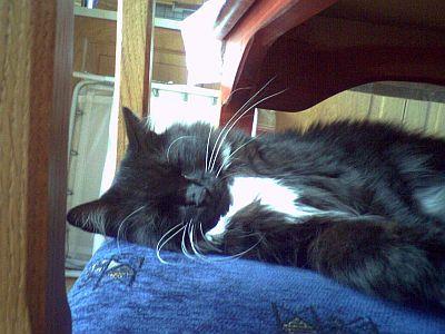 Tak zaprvé - ZNIČILA MI KOČKODROM, potvora!!! Prkno, které pro mne sice neznamenalo svět, ale most ze švestky na terasu, po němž jsem překonal výšiny a v kteroukoliv dobu tlapkou zabušil na sklo, aby mne vpustili do pokoje (no prosím, občas jsem strhnul pár třísek, sem tam silikonové těsnění, no bóóóže...). Teď se válí na trávníku, kolem dokola plno dříví, celá zahrada v třískách ... já stojím pod terasou, žalostně pláču, co pláču, řvu jako kráva! A nikdo mě neslyší... No tak teda jo, mamka se teď činí, každou chvíli chodí dolů ke dveřím a volá mě, však jí vždycky pěkně seřvu, kde si tak dlouho válí pozadí. Už se i u terasy válí cosi, co by mohlo být novým kočkodromem, ale nevím, nevím, venku je hnusně, že by psa nevyhnal, natož kocouře, a navíc mamka říkala, že ta kláda je těžká jako prase, tak to se toho hned tak nedočkám... Jinak takto, milá Marto, vypadá v praxi, když se někdo ujme ztracené vlády nad věcmi svými, takže jestlipak v tom taky nemáš tlapku, aha? Válí se tu sice cosi na stole, co vypadá, že na tu destrukci stromového porostu má jakýsi úřední slint, ale nebudeme si nalhávat, že pokácení poloviny zahrady je hnusný zásah do ekosystému našeho města a co na tom, že ty stromy si tykaly s plavuněma a víc než ovoce z toho bylo svinstva. A kdyby mamina pila slivovici, tak tu bude stát dál strom s kočkodromem, ale to ona jako naschvál pije víno, a ještě je u toho vybíravá!