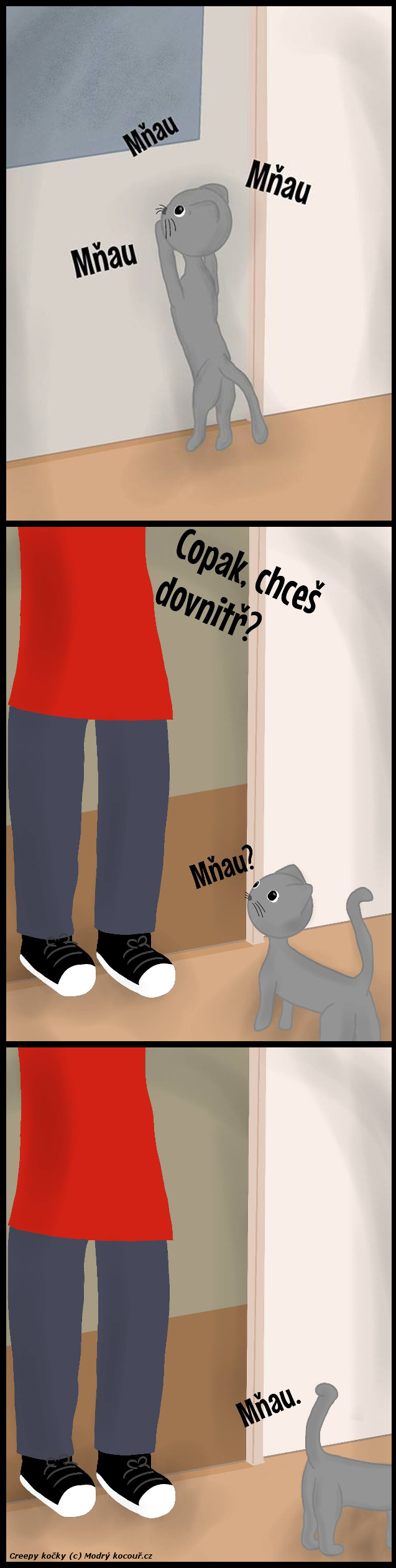 Přesné. Vždycky stojí před zavřenými dveřmi a chtějí dovnitř nebo ven nebo nejlépe obojí naráz! :-)))