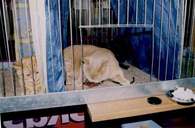Chtěl jsem k „naší“ paní doktorce Drozdové, co má stejného kocoura jako jsem já, ale tam bylo plno. Když jsem to viděl, zapřel jsem se tlapkami v bedně a mamina mě nemohla vyndat. Vzala mě proto silou a já jí trošku drápnul. Jako výstrahu. Nedbala. Vyndala mě na stůl, ten cizí doktor mi foukal do kožicha a hladil mě proti srsti. “Mňáá, chci pryč!“ křikl jsem a seknul jsem po něm. Rychle mě šupla do přepravky a šla hledat, kde máme klec. Když jsem byl v kleci, tak jsem se trošku uklidnil, ale zase mi vadilo, že Hanička vedle pobrekává, asi chtěla ke mně, ale maminka to tentokrát nedovolila, protože bych jí mohl třeba trošku šidit a to se prý na výstavě nesmí.