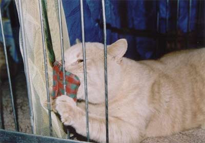 Po té příjemné návštěvě jsme dostali jednu bezva hračku, a to vám povím, to byla mela. Koupili nám taštičky se suchým kozlíkem lékařským. To je rostlina, kterou kočičky milují. Je to jako pro lidi čokoláda a zmrzlina a nejlepší oběd od babičky dohromady. Je to prostě BLAHO! Celá naše řada klecí „zešílela“. Já ten pytlíček kousal, drápal, válel se po něm, to samé dělala vedle Hanka a vedle mainský kocour a ještě vedle dvě norské kočky. Prostě davové kočičí šílenství. Pytlíčky vezla maminka domů úplně promočené a i doma nám to teď voní kozlíkem.