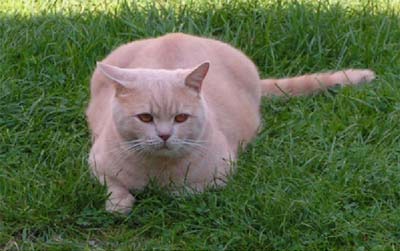 Na zahradu nám začal chodit soused děda s kosou sekat trávu pro králíky. Mě se to ale nijak nezamlouvá a vždy, když ho vidím tam jít, vyrazím za ním. Mami se tomu tuhle moc smála, protože jak dal kosu na zem, udělal jsem útok. Kosu zvedl, poodešel sem, kosa na zem, útok. Děda mě přemlouval, že musí sekat trávu, ale mě to tedy vůbec nezajímalo. To je naše tráva, já se v ní plížím a lovím myši, tak mi jí tady nech, proč jí kácíš tím divným železem? Jdi pryč! Kousnu tě! Nakonec si pro mě mami přišla, protože děda soused byl už ze mě bezradný. Prý jsem obranář.