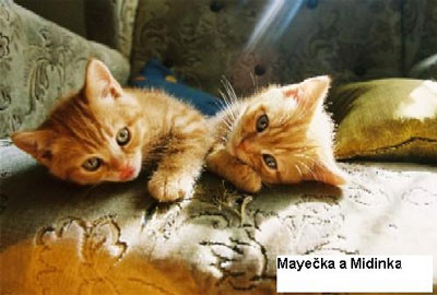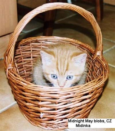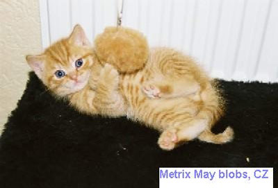 ztratili to předešlé rozhodnutí, protože moje děti jsou jedno vedle druhého perfektní. Tak třeba Metrix. Ten je celý já. Má velkou hlavu, kulaté tlapky, pěkný ocásek, nemá ani špičatá ouška, krásně kulaté oči a navíc má moc pěknou barvičku po mamině Hance s výraznou kresbou. O nic horší není kluk Merkurek, je jenom malinko světlejší, je trošku víc po mamince Haničce, takže není tak kulatý, zato má červené kolečko v kresbě na hlavičce. Podle toho ho také od mala rozeznávají. Kočička Maya Via je také po mě. Je robustní a kulatá. Je skoro tak velká jako Metrix, maminka je občas musí zvednout a podívat se jim na bříško, aby poznala, že Metrix je Metrix. Maya se nezdá, občas se pořádně popere, ale moc ráda si pospí, jako já. A Midinka je naše mrštná šikulka. Ta se moc povedla mojí Haničce. I oči má po ní. Bude to jednou štíhlá a hbitá slečinka. A je moc zvídavá, nebojí se ničeho, prozkoumává doma každou škvíru a dokonce chytá naší fenku Žofinku za ocas i tlapky. Někdy s ní i spí na jejím pelechu.