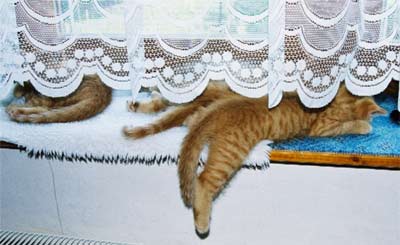 Ale alespoň máme to nové okno, co si maminka tak dlouho přála. Pokoj se úplně změnil, je tam víc světla, už se těší, jak jí tam porostou kytky. Možná. Jestli jí je moje děti nezlikvidují. Už se pokusily o jednu kytku ve verandě, vyházeli zeminu z jiné v ložnici a dokonce Midinka seděla ve váze naštěstí jen s umělou kyticí. Ty moje děti jsou prostě všude. Jdete do koupelny, jsou ve skříňce na mycí prostředky, jdete do ložnice, vykukují pod postelí, otevřete skříňku v kuchyni, hup, už je tam kotě. Mami dokonce minulý týden navečer hledala koťata a viděla jen jedno. To potom chodí po celém bytě a čičíkuje, nic. Jen podivný šramot ve skříňce, kde je kočičí jídlo. Otevřela tedy skřínku a…… oni tam sedí a koukají na ní!. Nejdřív nechápal nikdo, kde se tam vzali, táta maminku dokonce podezříval, že to udělala schválně, aby ho rušila u televize, ale potom přišli na to, že v tom mám packy já. Já tu skříňku otevřel, protože jsem hledal něco dobrého, mimina tam nalezla, pant na dvířkách se pomalu dovřel a byla tam.