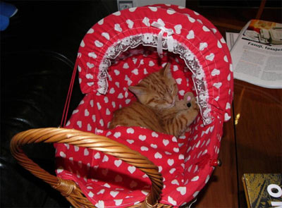 Ne prostě je to tak, já to vidím, že to sice naší mamince trhá srdce, ale Merkur se má v nové rodině báječně, dokonce už máme i fotky, představte si, on se tam dokonce vozí v kočárku! Mají tam totiž malou slečnu, která se o něj stará, taky tam mají toho kluka, který si pro něj u nás byl, ten ho zase trénuje, prostě Merkurek má vystaráno a moje mami je taky klidná. Ale zpět k Midince. Midinka byla v sobotu od rána strašně divoká, myslím proto, že jí to mami řekla. Představte si, ona dokonce utekla ven, vykračovala si jako slečinka kolem garáže, když jí mami uviděla. Vyběhla proto ven a Miďa tam nebyla. A to už ta její nová paní Dana volala, že jsou na cestě! Pro kočičího pána, to byl shon, mami běhala, táta běhal, psí holky se pletly pod nohy, prostě mela. Jenže Míďa si klidně prozkoumávala stodolu a dřevník, kam se při tom křiku ukryla. Takže byla nalezena, byla špinavá, byla cítit kouřem z kotelny, no prostě to chtěla udělat tak, že jako až ta paní Dana přijede, bude ošklivé a nechutné koťátko a nechají jí doma. Omyl!! Byla učištěna, oprášena, rukou od mýdla otřena, dostala najíst a způsobně čekala na příjezd své nové maminky v přepravce, aby náhodou......