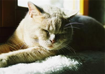 Spím teď doma, nechodím na půdu, protože tam je chladno. Ale spím doma hlavně proto, že v noci chodím za naší maminkou do postele, lehnu si na ní a ona mě hladí. Když náhodou nehladí, tak jí trošku drápkem píchnu do brady a ona pokračuje, jenže potom ráno říká, že se nevyspala. Tak nevím, proč si nezdřímne ve dne? Já to tak tedy dělám. A Hanka taky. Ta má svoje spací místo v ložnici na skříni, tam je prima teplíčko, protože je to až u stropu. Taky tam někdy vylezu a spíme tam spolu.