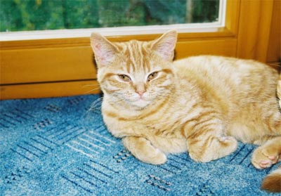 Majka seděla na prahu pokoje, normálně se k těm lidem měla, tulila se, bez rozloučení s Hankou nasedla do přepravky a už nebyla naše. Mě to připomnělo můj odjezd z domova, já taky nasedl do bedny a už jsem se na svojí maminku ani nepodíval. A jednou na výstavě jsem se s ní potkal a dokonce jsem na ní vrčel a syčel a vůbec jsem jí neznal. Jo jo, jsou to nevděčná stvoření, ta koťata. A tak nám odjela naše poslední holčička až do České Třebové. Jo, tak už to v tom kočičím životě chodí, už jsem o tom jednou mluvil, nejde přeci, aby koťata zůstávala doma, i děti lidí odcházejí z domova, naše Věruna přeci taky odešla. Potom si zase mami s paní Zdenkou psaly a prý po cestě vůbec nebrečela, hrála si a doma v Třebové si jí hned očichal ten kocour a jejich starší kočka jí nabídla, že jí bude dělat maminku. Takže to určitě bude pro Mayku to nejlepší, co jí mohlo potkat. Jo a protože je krásně červená, asi se bude jmenovat Karkulka :o)
