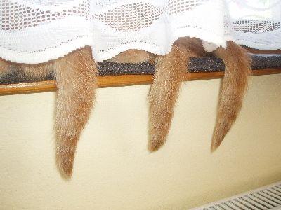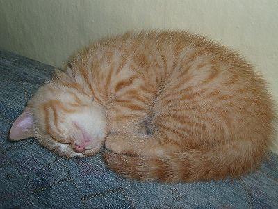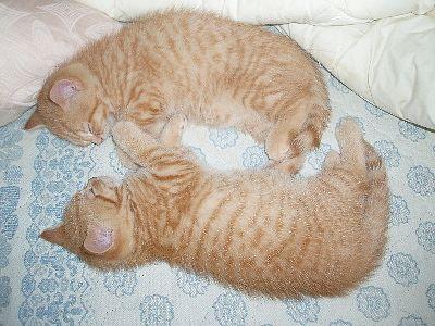 Naše krasavička Nanna. Je nejkrásněji tmavě červená, má výraznou kresbu s náznakem tygra. A také je to tygřice. Když vymyslí útok, běží bokem a vrčí. To ale její sourozence nezastraší, naopak, no a potom se vždy strhne pěkná mela. Ale naštěstí je vždy nablízku Hanička, která vše pozoruje a včas zasáhne. A to potom největšího rváče odkulí stranou, celého ho olíže, čímž ho zklidní a rychle nabídne svojí mlékárnu, protože s plným bříškem se pěkně spinká. A kde všude jsou ti malí neposedové schopni usnout? No hledají je občas obě. Mami i Hanka. Kotě klidně usne třeba pod skříňkou, za taškou, v krabici, často se schová pod pelíšek, někdy do knihovny za knížky, nápady mají ti malí uličníci všelijaké. Ale to už tak je, když je kocour jednou kotě, já to taky dělal, dobře si na to vzpomínám. A co víc, naše koťata čůrají do WC, ale já prý někdy čůral do zásuvek u počítače. Tak to zatím nezkusily, děti jedny.