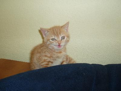 Jako prvního Vám představím Napoleónka, protože je to jediný kluk. Narodil se sice poslední a nejmenší, ale rozhodně to tak ale nechtěl nechat. Chvíli mu sice trvalo, než přemohl přesilu sestřiček u mlékárny, ale když začal přibývat na váze, bylo vyhráno. No a potom se rozhodl, že prozkoumá, co to dělá maminka u misky, že to tak divně křupe, a přišel na to, šikula. Začal baštit granulky. Když na to naše lidská mami přišla, ani tomu nechtěla věřit, ale bylo to tak. Protože na něj asi nezbývalo mlíčko a nebo proto, že je to chlapík vykutálený a nechtěl se prát, začal baštit sám. Hanka ho sice první dny od misky odháněla, ale potom to vzdala a Napi začal první chodit na kočičí WC, první si vyzkoušel pití vodičky z misky, samozřejmě první přijal od mámy náhradní mlíčko z talířku.