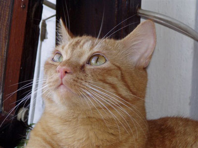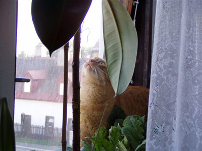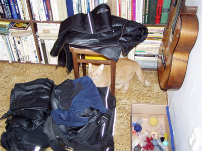 Milí kočičáři i dvounožci. Konečně jsem měl návštěvu také já. Přijeli za mnou Vlastík a Katka a jako dopravní prostředek si vybrali motorku. Moc jsem se na tuto návštěvu těšil. Maminka stále někam jezdí, ale já jsem žádné dvounožce z Modrého kocouře dosud neviděl. Návštěvu jsme čekali už od rána. Vypadalo to na pěkný, sluníčkový den, tak jsme zavolali do Berouna, jestli se k nám dvounožci od Áji a Matýska opravdu chystají. Pak dorazila SMS, že „návštěvníci“ jsou už jenom kousek od nás. Maminka vyšla na dvůr otevřít bránu a za chvilku si to přivrčela velikánská černá motorka a na ní dva zakuklenci. Celé jsem to pozoroval z okna. Ale když ti zakuklenci dorazili k nám, utekl jsem. Byli strašně velicí a celí černí a tak divně voněli, že jsem raději zalezl za sedačku a ani jsem nedutal. Oni se ale odkuklili, hezky mluvili, volali na mne a dokonce mi přivezli dáreček. Tak jsem pomaloučku vylezl. Očichal jsem zavazadla, prostudoval jsem mapu cesty, ale nedůvěra byla veliká. Snažili se mě dokonce nalákat na takovou voňavou dobrůtku – konzervičku s lososem (moje neoblíbenější masíčko). Nedal jsem se zlákat.
