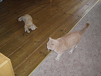Tak přátelé, zítra je to právě rok, co se nám narodila první koťata. A uteklo to jako voda, máme druhá a ta moje Hanka, to byste nevěřili, ona už zase žadoní, vyzpěvuje, vykřikuje, co chvíli vyluzuje zvuky jako kocour a hned je zase kočička. Mě to nedá spát, mami to taky nedá spát a táta nadává. Abych jí udělal po vůli, snažím se k ní dostat. Už se mi to několikrát povedlo, ale mami byla vždy někde poblíž. Až dneska. Asi zapomněla, že jsem v bunkru (to je krabice po koťatech dnem vzhůru, kde se každou chvíli někdo schovává), odešla věšet prádlo a když se vracela, slyšela už jen jak Hanka křičí, no a když vletěla do pokoje, už se jen válela a já slastně frkal. Chlupy na zádech jsem měl zježené a chtěl jsem, aby mě mami hladila. Dokonce jsem se jí otíral o nohy. Ta koukala! Ta nevěřila vlastním očím! No co, když to Hana chtěla, tak co jsem měl dělat? Mami prý si něco plánovala, jako že Hanička pojede k nějakému jinému kocourovi, či co? To určitě! To bych nedopustil! Je moje? Je! A basta. No třeba se to zase nepovedlo, ale k "tomu" tedy došlo. No a bylo to vážně prima.