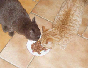 Začaly dny seznamování, syčení, bručení, Beatčina strachu ze psů, ze mě, z Hanky a z koťat. Se mnou to bylo za pár dnů dobré. Jednak nejsem moc doma, no a potom, vždyť vím, jak na holky. Pejskové si Berušky nevšímali, koťata jí zvědavě okukovala, ale Hanka! To jste lidi neviděli. Z Hanky se stala saň. Jak Beu potkala, mlátila jí hlava nehlava, kotě chudák nevědělo kam utéci. Maminka musela být pořád u ní. A Hanička, místo aby se s kočičkou kamarádila, vykoledovala si trest, jaký jsem měl zatím díky svému značkování já. Začala značkovat a je vykázána z domova. Domina jedna. A tak se ke mně připojila a během dne jsme spolu ve voliéře a v noci na půdě. Já si tedy nestěžuju, Hanka myslím taky ne. A Doma je klid, chodíme se tam najíst, pomuchlovat s mámou, vyčesat kožichy, poležet si na křesle, ale potom: „ Hajdy, vy uličníci,“ říká mami „já tady nebudu pořád běhat s kyblíkem a hledat, kde tu kdo zase něco napsal!“ No normálně, ta Hanka si stoupne ke zdi a klidně píše jako já? No to bych do ní neřekl, že je tak šikovná.