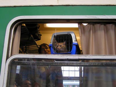 Pak mě zavřeli do přepravky, chytil mě ten největší dvounožec a vyrazili jsme na vlak. Bylo to tak rychlé, že jsem se ani nestačil rozloučit s Alim. Všichni na mne byli moc hodní a tak jsem jim ještě zamával z okénka. A jelo se.