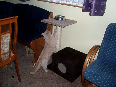 Druhý den tam byl děda zase. Tak jsem mu přikazoval, že chci konzervu, Bea že musí dostat kuřecí masíčko, Haničku že najde určitě v koši na prádlo na skříni, protože chodil a volal a nemohl jí najít. Potom zase nemohl najít mě. On se totiž bál, že mu utečeme na zahradu. Opatrně otvíral dveře, pořád se rozhlížel, asi to pro něj byla dost námaha, hlídat tolik zvířat. Mami ta to zvládá jednou rukou, ale děda? No a tak chodil a hledal mě, už se určitě strachoval, no a já spal ve svojí plastové přepravce. Jak jinak? Šel s holkama psíma na procházku, díval se na televizi, to je divné, říkal jsem si, proč tu není máma?! A zase byla noc a děda se zas uložil do postele. Tak to už mi přišlo divné, protože se říkalo, že budou druhý den doma! Nestalo se něco? Celou noc jsem byl protivný, vykřikoval, chodil ke dveřím, až mě děda vyhnal na půdu. A hned po ránu jsem ale chtěl domů. Musím na ně čekat, určitě přijedou! Byl jsem vám tak rozčilený, že jsem se při jídle rozzuřil na Beátku, vyhodil jí od její misky a chtěl jíst její syrové kuřecí! Fuj! Když jsem to zjistil, tak jsem praštil do misky a ta letěla po kuchyni. A už tam byl děda. A prý co dělám. Tak jsem na něj zasyčel, děda popadl koště a to jsem panečku pelášil! Jako zajíc. A až do večera jsem trucoval na půdě.