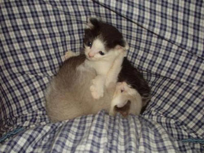 Dneska je zase neděle a to něco je stále u nás doma a převrací mi to život naruby. Jsou to Vetřelci. Dvě maličká koťátka, z jednoho vrhu:). Přesně podle přání.