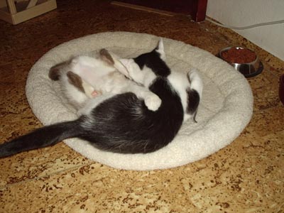 Pro samé vypisování her našeho chlupatce (a protože mi dcery četly přes rameno a radily, co mám připsat), jsem nenapsala, to co jsem původně napsat chtěla. Tedy: mít takové dvě Micinky nebo šestnáct! je určitě velká "zábava". Člověk by je někdy (po nějaké vykutálené kočičárně) přetrhl a vyhodil na mráz. Ale známe to: když oni jsou ti kočičáci tak "heboučcí, mají růžové čumáčky a tlapičky, a podívej jak se mazlí". Jitka