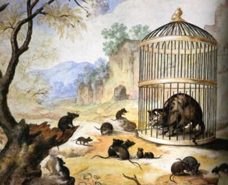 V barevném, původním obraze kočka sice splývá s pozadím, avšak v jeho rytině, volném "překladu" původní obrazu je kočka naprosto jasně zobrazená.