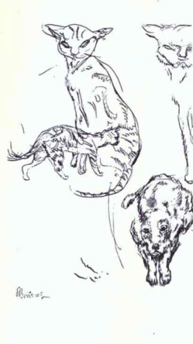 Francouzský malíř, Pierre Bonnard, přestože se přiklonil k intimismu, nevyhnul se ve svých dílech ani kočkám. Jeho styl malování byl spíše chvějivou neurčitou kresbou, vyznačoval se smělostí a prostotou.