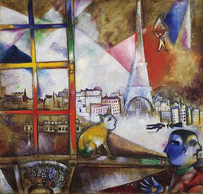 Marc Chagall je ruský malíř židovského původu, který strávil část svého života ve Francii, nejdříve v Paříži, pak na jihu. Jeho malířský rozsah byl poměrně široký od narození, smrti, běžného života, lásky, králíky, revoluci, Bibli, cirkus, akrobaty, až po krávy, ryby, města, kytice, kočky... Chagall je považován za vedoucí osobnost tzv. Pařížské školy, což se dá označit za triumf, neboť Paříž žila v té době kubismem a fauvismem a v porovnání s nimi byla Chagallova díla příliš poetická.